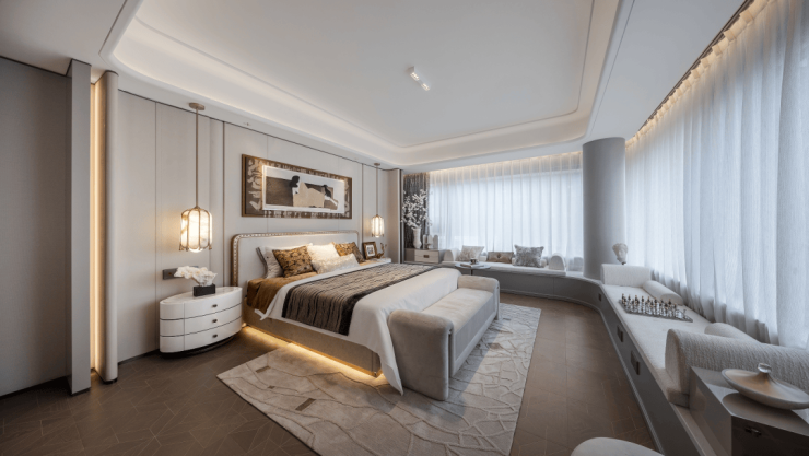 苏州招商序还首创了“深度睡眠系统”,特别针对卧室门采用了隔音填充材料,使用静音锁降低关门噪声,在设计之初就将电梯井道和排水管道,远离睡眠敏感区域,加载隔音高性能窗,让「回家就要睡个好觉」,成为日常。