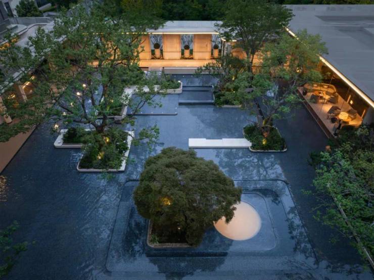 在前场景观体系,苏州招商序又围绕6幕归巢洄游序曲,创新提出将平面景观变成立体景观,通过超600㎡水院与后场归家庭院的嵌套、地面庭院与下沉庭院的垂直呼应、近两百岁名木羽毛枫的点缀,有层次地加强人与人、空间、生活的自然交往,让审美不再是单纯的堆叠奢石,而是进化成阳光下松弛的人。