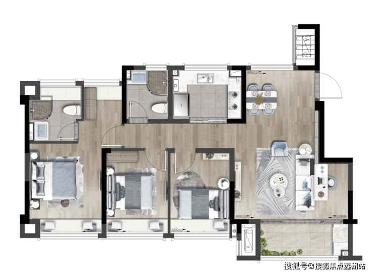 该户型翠湖水岸售楼处电话:400-000-0460转6666【预约☎】各功能间尺度更舒适也更均衡,是一个能让三口之家真正一步到位的户型;