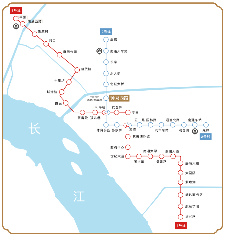 地铁二号线出门即达钟秀路站,与一号线形成主城轨交十字轴,双线换乘,便捷绿色出行,可通达南通各个主要商圈和行政文化中心。