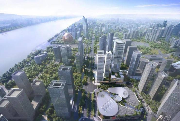 项目最初规划为299米主塔+280米副塔,意图打造“钱塘江北岸第一高楼”。但因航空限高等因素,方案历经5次调整。