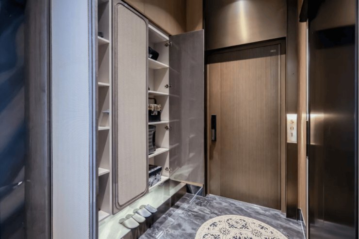 楼栋采用地下+地上双精装入户大堂,为业主营造星级归家礼遇;特别在归家入户中,更是每一户都享受“双开门电梯+阳光梯厅”的私享入户门厅的豪宅级超配,也即“类一梯一户+全明梯厅”设计,价值力远超市面一般楼盘;