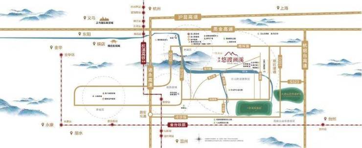 项目近享磐安老城和高铁新城双重资源配套,诸永高速、甬今高速、杭绍台高速、金台铁路及杭温高铁磐安站(2024建成)等环伺周边,从项目出发,到宁波、温州、金华,义乌等都市皆十分便捷,也将是直通杭州大湾区、杭州大都市区及国际大都市上海的便捷通道。