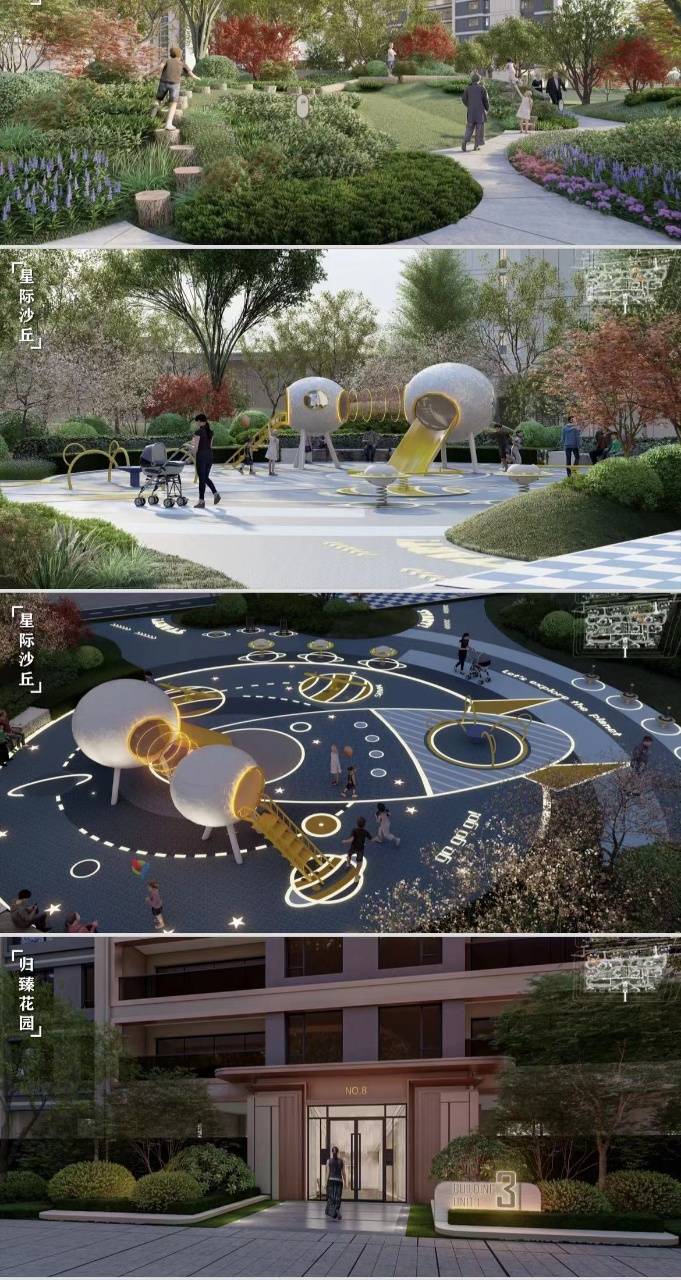 · 全人车分流星级酒店地下车库入户大堂,星链系景观设计,每个组团配有幸福学堂、0-3岁托育点、共享书房等便民服务,并配备三个地下会所为业主免费提供使用,打造高品质生活