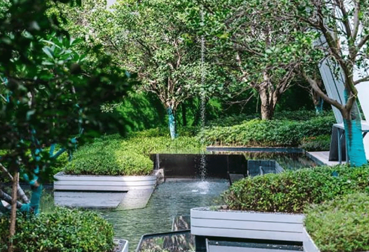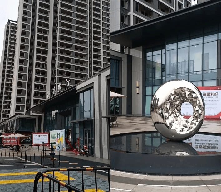 作为项目前期预售阶段的门面担当,售楼处的建筑风格将会直接影响购房者对项目的第一印象。站在星海时代项目售楼处前,入眼即是圆形水景,售楼处建筑整体风格为现代风,使用了大量玻璃元素,使售楼处更具通透感。
