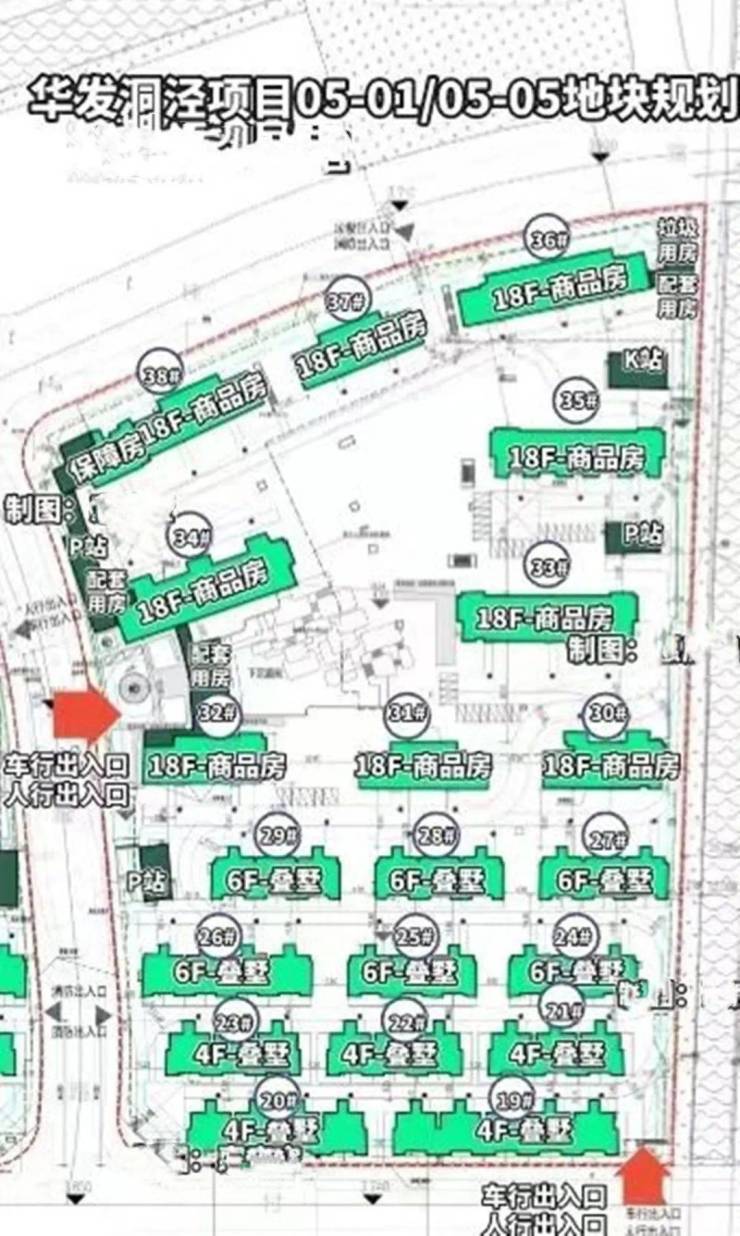 05-05地块的门位于西南角与东面,根据设计方案显示,有一栋保障房、7栋18层高高楼、6栋6层楼栋以及2栋4层高楼栋。18层高度约为57.2m,6层为18.55m,4层为12.55m,保障房也为18层,高度为57.2m。