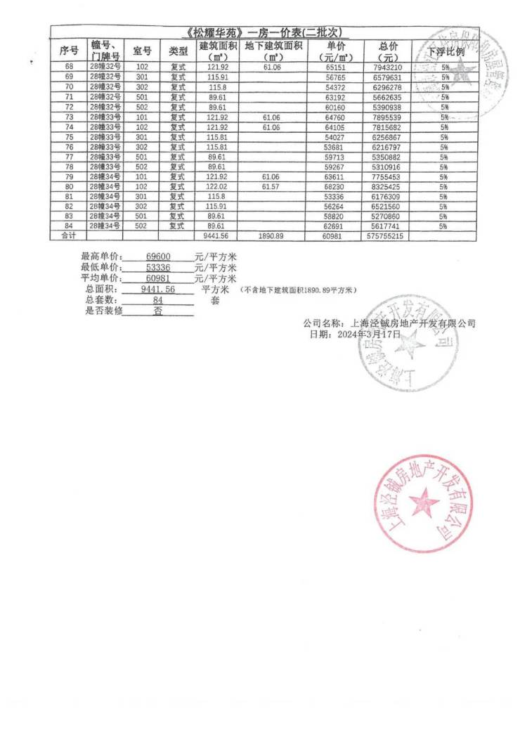 一房一价表: