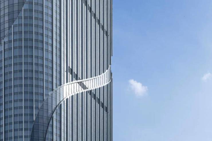 幕墙的形式多样,但主要以标准板和飘带板两种为主。每一块单元都经过精心设计与制作,共计一万六千三百六十三块单元,它们或规则排列,或随风摇曳,共同编织出一幅流动的画卷。阳光透过幕墙的缝隙洒落,为写字楼增添了几分温暖与生机。