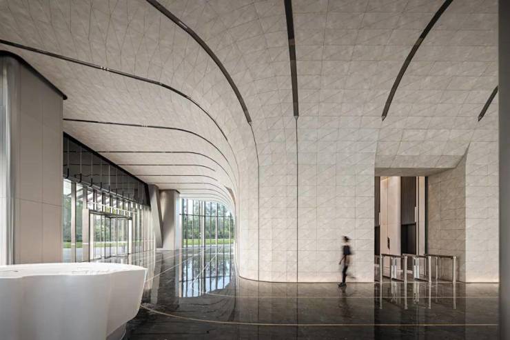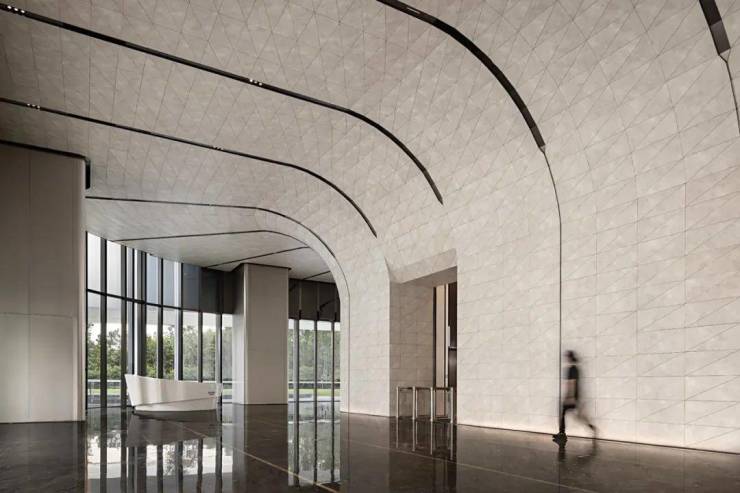 这座建筑的设计精髓,在于其简约而不失深邃的外形,其表面仿佛被赋予了生命,随着光线的流转,演绎出宛如钱塘江潮汐般灵动多变的线性美感。光线在其上跳跃、交织,勾勒出一幅幅生动的画面,犹如钱塘江潮水起伏跌宕,为建筑的立面增添了无尽的韵律与动感。这不仅仅是一座建筑,更是一曲用城市元素谱写的乐章,每一个音符都跃动着“钱江潮涌”的独特韵律,与自然的壮丽景观遥相呼应。