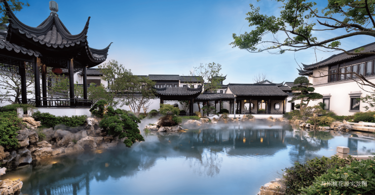 2023年,吴江城投力邀苏州桃花源总设计师王科先生携香山帮御用古建团队、苏桃核心景观区营造团队、杭州江南里景观总设计师、绿城中国十大金牌讲师、蓝城风景园林院院长丁自峰团队等苏州桃花源原班团队回归,于吴江文化积淀深厚之地——垂虹桥旁、运河畔,再造一座桃花源。