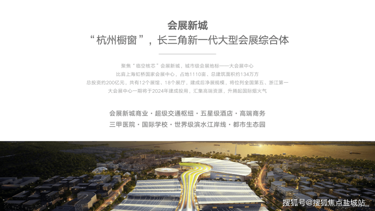 会展新城位于钱塘江畔,机场西北侧,以萧山南阳街道全境作为规划版图,继钱江新城+奥体、亚运村+江河汇流后,成为拥江发展新引擎。大会展中心,杭州“十四五”重点建设项目,总投资约200亿元,总建面约134万方,为全国“三大会展中心之一”