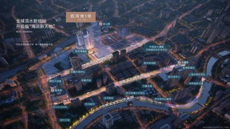 【苏河湾1号】位于静安内环内,东至河南北路、南至海宁路、西至浙江北路、北至天目东路。