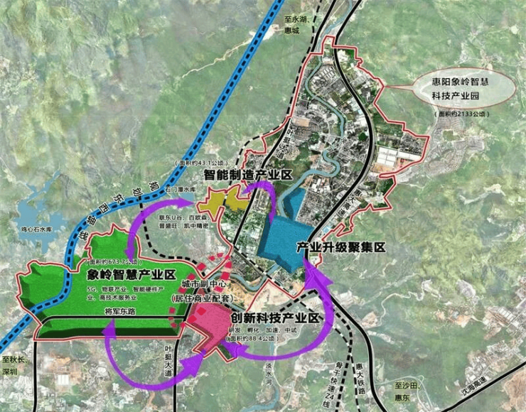 依托“丰”字交通战略,打造“千亿级园区、万亿级产业”,将建设惠阳象岭产业园、惠阳新圩智能产业园等千亿园区,目前已汇集伯恩光学、凯中精密、联想等多家实力企业。