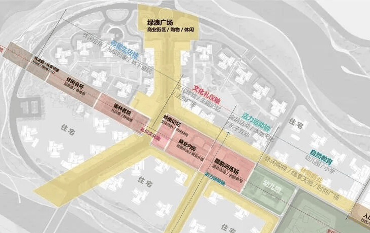 项目背山面水,三面环河,借此 我们打造九大爆点景观、六进院落空间景观组团,实现自然、城市与人居的美好共生。