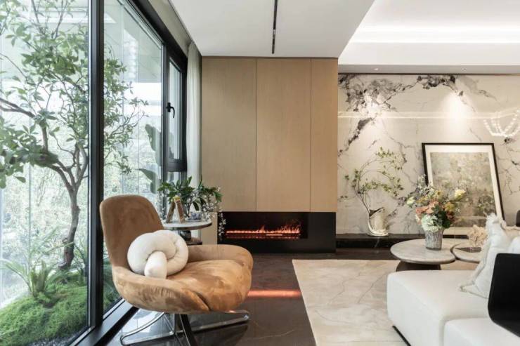 规划四重尊崇归家动线,从“府门”到“中轴”“架空层”再到“首层艺术大堂”,结合自然森境、水景叠瀑等元素,营造出高雅、舒适的归家氛围,地下归家大堂采用“劳斯莱斯星空顶”设计,强化豪宅质感。