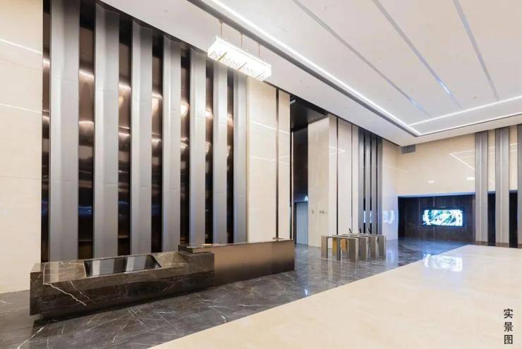 电梯选用“三菱”品牌,配置6部客梯1部货梯,地面大理石铺贴,墙面金属薄板,整体时尚大气。