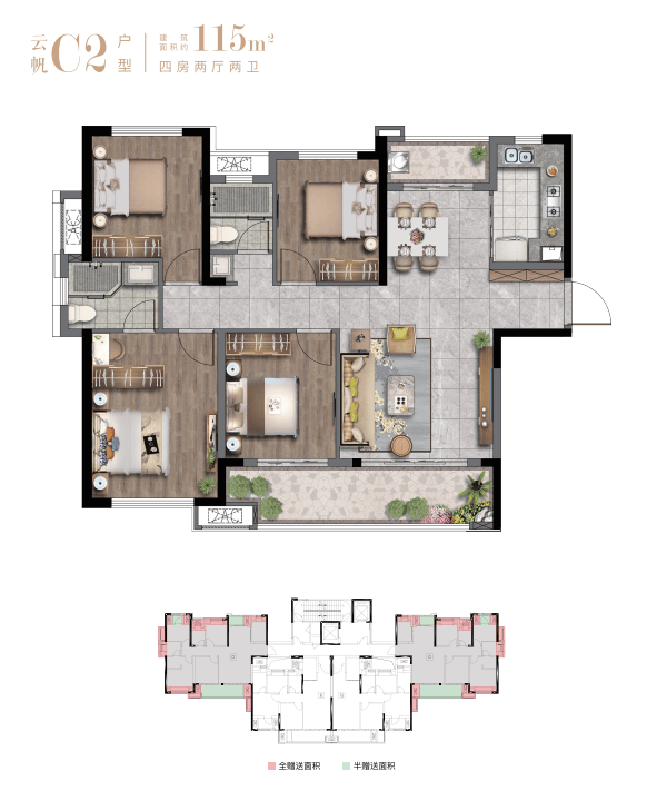 中茵外滩云玺臻筑约3.8万方现代艺术园林,以3032㎡中央会客厅为中心,构建“两轴六园多组团”多维景观,为全业主营造一座全生命周期社区。整体容积率低至1.6,约35%超高绿化率,亲近自然。全龄富氧园境组成完善景观体系,拓新大城舒居,归家感、尊崇感、现代感于此融合。最大约75米敞阔楼间距,更好保证居住私密性,满足居者舒适度与空间感的双重需求。