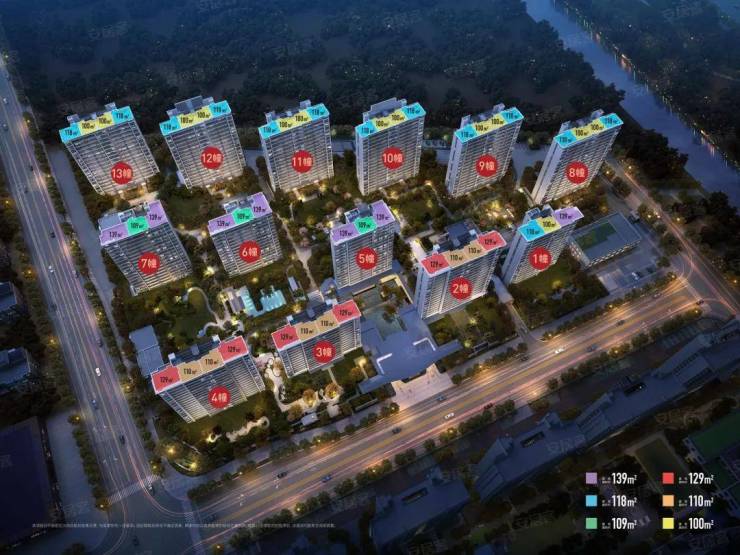 项目建筑面积13.57万平米,占地面积4.15万平米,容积率为2.40,规划821套房源,13幢住宅,分别为1幢13F、1幢16F、2幢17F、9幢18F。