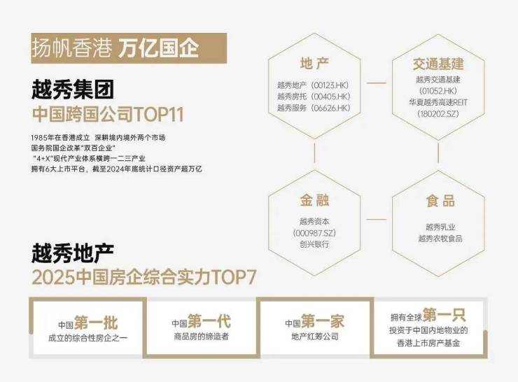 【越秀地产】广州市属国企,2025年中国房企综合实力TOP7,40余年地产豪宅经验,深耕广州、上海超一线城市,2021年首进上海,先后打造外滩樾、静安天玥、苏河和樾府、静安悦等12个高端项目。(数据来源中国房地产业协会《2025房地产开发企业综合实力TOP500》榜单)