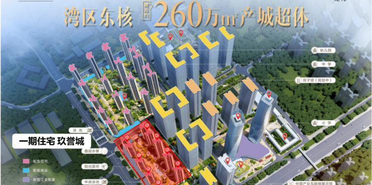 项目规划总建面约260万㎡(计容建面约184万㎡),涵盖天际双子塔、约54万㎡高端住宅、约108万㎡产学研发基地涵盖商办+Loft公寓、约6000㎡惠州首个以中国命名的中国产业互联网展示馆(造价约1亿)、约4万㎡一站式教育资源、约3.6万㎡智慧高端mall等为一体的地标级产城超体。