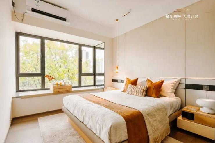 阳台尺度近5m,各种美景,轻松尽收眼底;主卧、⼉童房皆配有飘窗,次卧带阳台,空间感更强、舒适度超高。(具体请以实际交付为准)