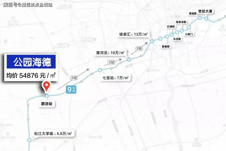 盘点一下9号线沿线房龄10年以内、有电梯的普通住宅小区近一年成交的最高单价,泗泾的二手地铁房目前最高单价在7.17万/㎡、九亭是6.28万/㎡,徐汇和漕河泾是13.08万/㎡,就连以动迁房居多的浦东曹路也到了5.76万!
