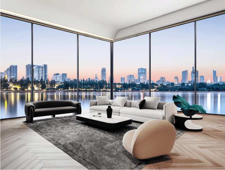 在305方的尺度里,不只是主卧在改善,蓝城要满足的是每个房间都以巨大的尺度,家人平权的一起改善。全面屏不只是室内,外立面90%都是玻璃,一座漂亮的建筑就是会让人每天路过的时候,忍不住多看几眼,漂亮的不像实力派。