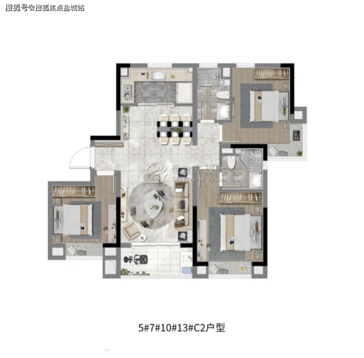 这个户型可以说是一步到位的改善户型了,三代同堂+二胎家庭同样可以拥有不错的居住体验,如果预算够得着,非常值得购买!