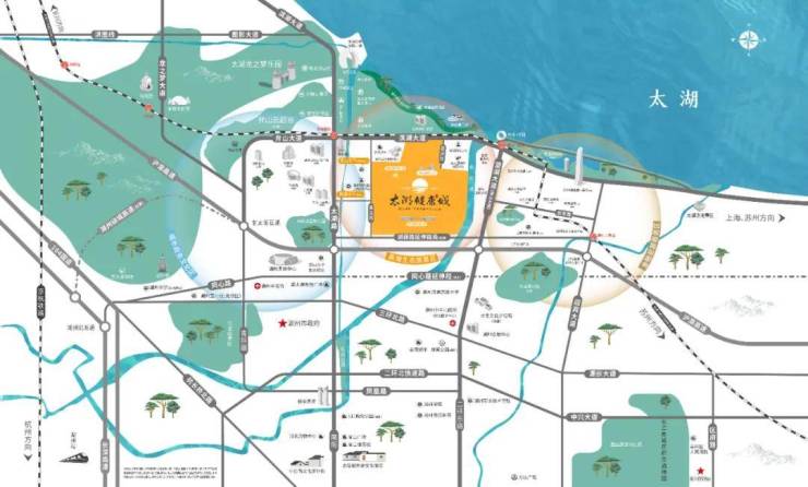 太湖健康城总建约200万方,总占地约2000余亩,总投资超200亿元,拥有高达50%的产业自持物业比例。