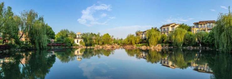 在杭州这样的新一线城市,城市低密住宅项目已是稀缺,超大盘的低密改善更是难得一见。而百万方超级体量的大华西溪风情,墅区容积率低至1以下。不是大量建筑堆砌,而是以生态自然景观筑造整个杭城难得的水系低密墅区。其中,整个园区水域面积就达到约17万方,3万方中心湖,3500米河道,水系交错纵横,小岛、曲径步道相依,让建筑成为长在自然里的建筑,和绿意碧波交相掩映。