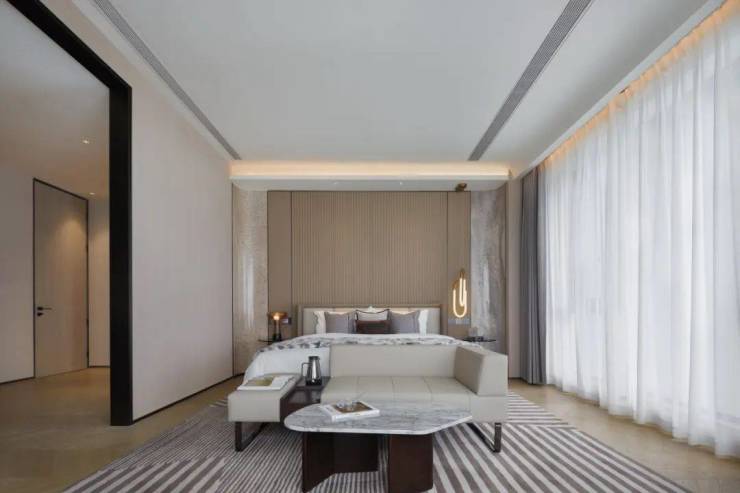 主卧设置了男女主人的衣帽间,整个户型的收纳空间可以达到13%以上;自然流畅的功能分界,尽显豪门气度,和当代奢华平层的品质追求。