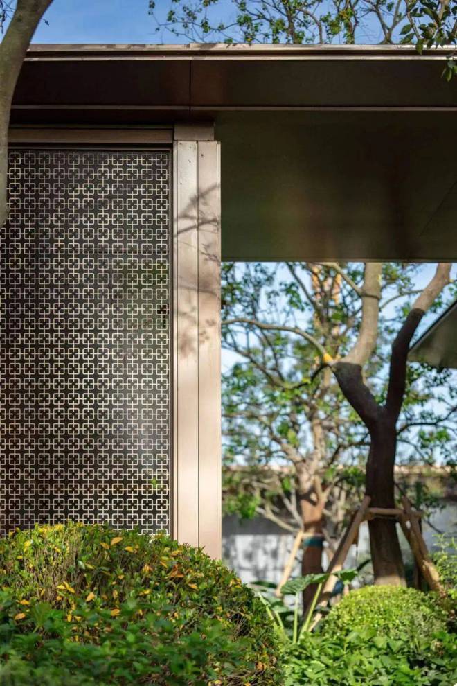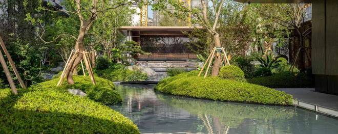 聆星客厅前方种植了松界王者——日本黑松,约4000万+的顶豪融创外滩壹号院的社区内,也有一颗同款;