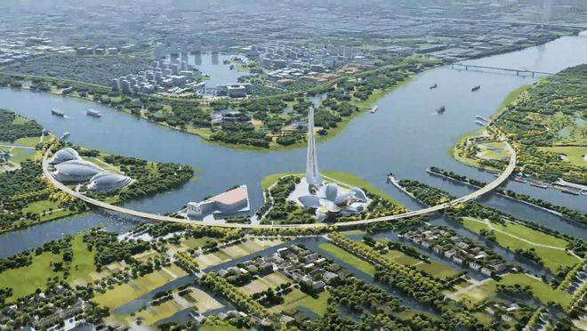 此次的国际方案征集提出了一个新的设想,在大治河、金汇港两岸,即浦江镇、金汇、西渡3个片区之间新建一个超大的步行桥,让这3个市级的公共绿地相互贯通。