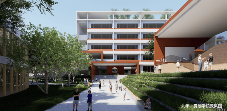 板块内规划了一所九年一贯制学校和一所24班幼儿园。