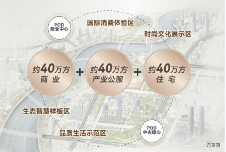 POD商业中心:围绕漫步式商业街区打造的约40万方的“POD商业中心”,商业中心包含露天剧场、大型室外秀场、水上运动等。