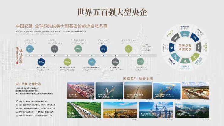 120余年历史的百年央企品牌,国匠巨擘,全国唯一一个集“三个试点”(国有企业党建工作联系点/国有资本投资公司试点/交通强国建设试点单位)于一身的中央企业,“世界百强央企TOP60”“´一带一路´战略共建者”“城市综合开发运营商。