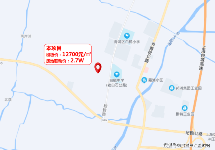 2021年6月21日,宝业集团以总价5.69亿元竞得青浦区白鹤镇白石路北侧30A-01A地块,成交楼面价12743元/平,溢价率8%,房地联动价2.7万/m²。