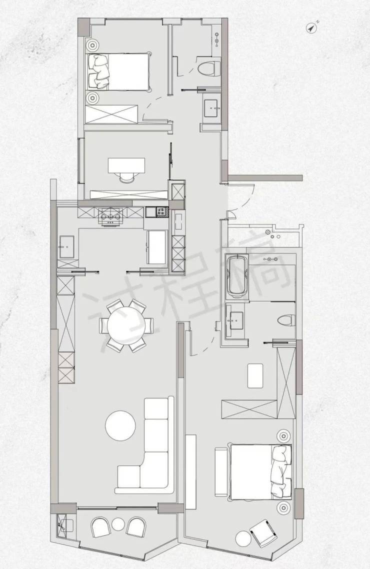 建面约151㎡3房2厅3卫户型