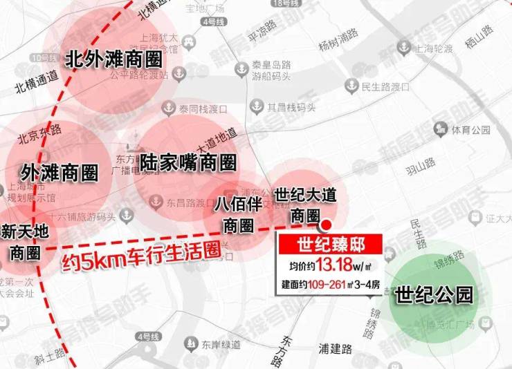 车行生活圈也是相当优越,【世纪臻邸】周边直线距离约5km范围涵盖陆家嘴、外滩、北外滩黄金三角顶层商圈以及新天地商圈。