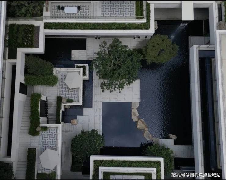 2⃣、大门 为”三重归家礼序“近60米超长景墙,辅以三重檐建筑,搭配20余米维纳灰石材景墙,迎宾罗汉松苍劲挺立于安哥拉黑光面水景之上。前院则采用‘藻井天幕’暗合天圆地方的东方宇宙观,藻井落中‘百年古桂’贵气迎门,海纳百川。