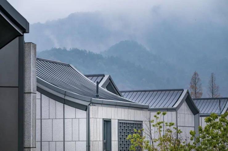 涵云轩的建筑在尽可能范围内,吸收江南院落的坡屋顶、白墙灰瓦、山水景墙等中式风骨,放眼望去,见阳光洒下、韵律辉映,将周围青山绿水映衬出更浓郁的自然之色,绿与白,深浅相照,自然与建筑,完美交融。