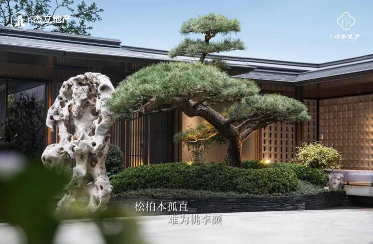 价值百万的黑松,营造了“九松入境”的仪式感:九松由7颗泰山油松、2颗罗汉松组成;小区内部还有从日本进口的黑松,寓意福寿康宁,造价极高。