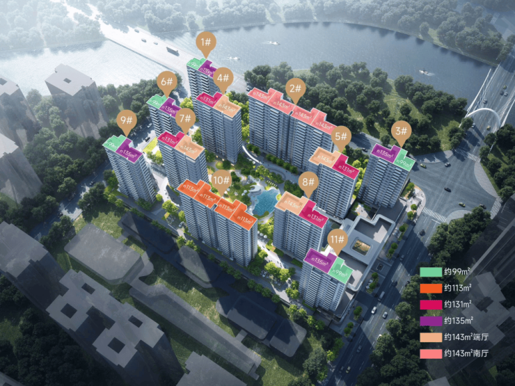 产品方面,则涵盖建面约99、131、135、143㎡的三四房,主力户型为131-143㎡四房;而99㎡三房较为稀缺,仅29套房源。