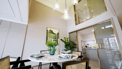 更赞的是,部分户型还有一个室外的空间,可以玩花弄草、仰望星空,吹一吹来自西湖的微风。约4.77米的层高,1米8的个子,在上下两层来回穿行,也不会觉得压抑。而且,因为是loft,这也大大提高了得房率。与一些小户型住宅相比,空间感要大很多。