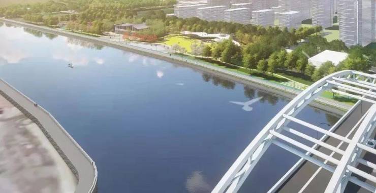 项目东侧紧邻黄浦江的上游河道——掘石港,将打造全长约2公里的西岸绿化景观步道,约1.5公里长的跑道、沿河景观大道,人文走廊、儿童老人休闲区等小品也将穿插其中。