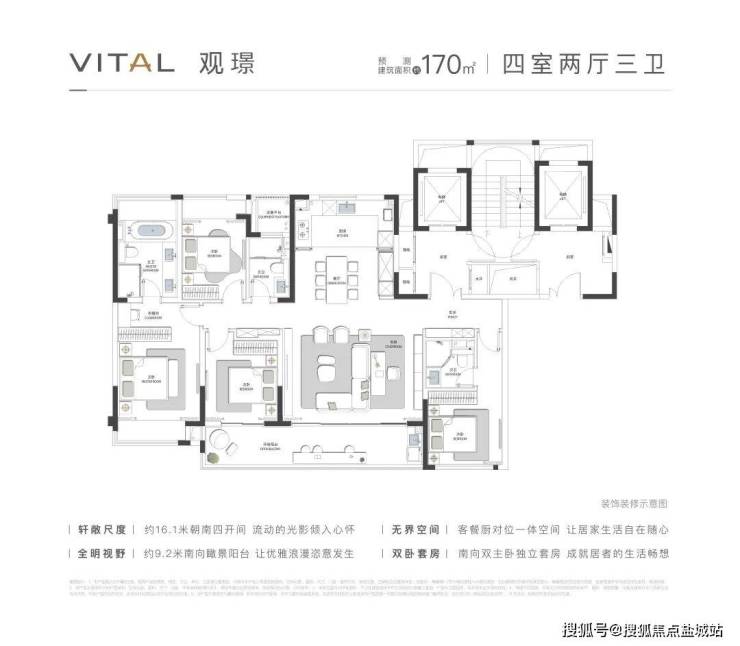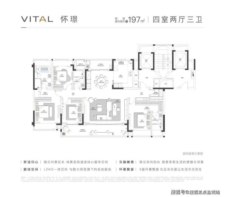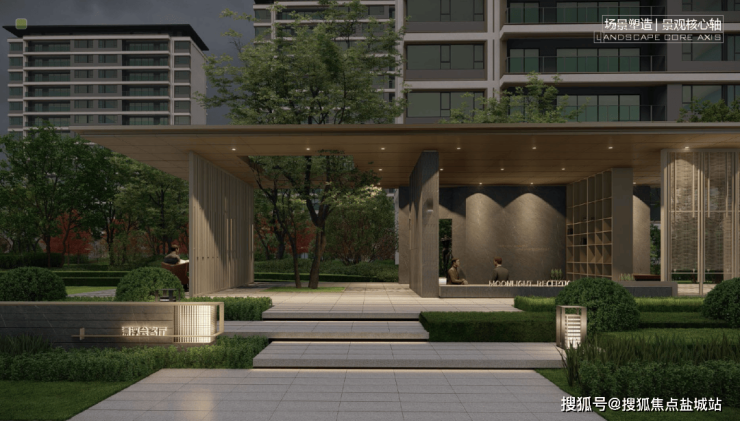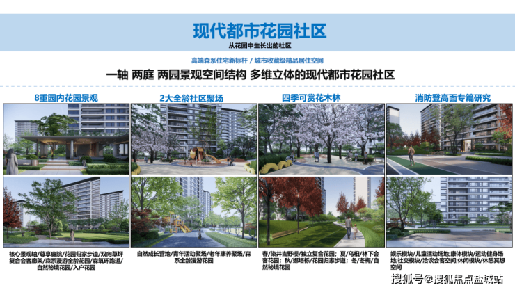 约8000㎡核心景观轴、约2400㎡两个尊享庭院、南北各区设共享花园和私享花园。
