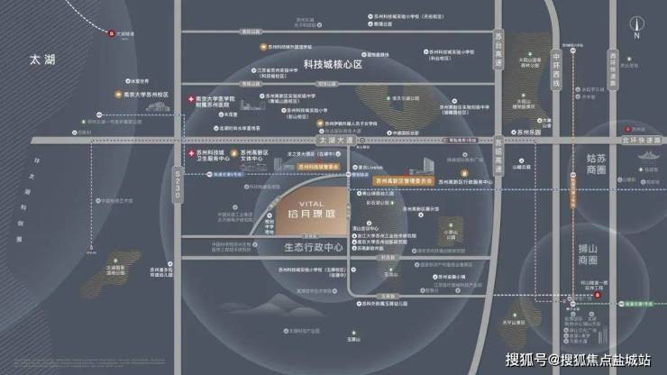 苏州核心板块梯队:苏州科技城位于苏州西部,西临太湖,东依大阳山国家森林公园,是苏州市“一核四城”发展定位中的生态科技城的重要组成部分,是苏州高新区行政中心所在地。