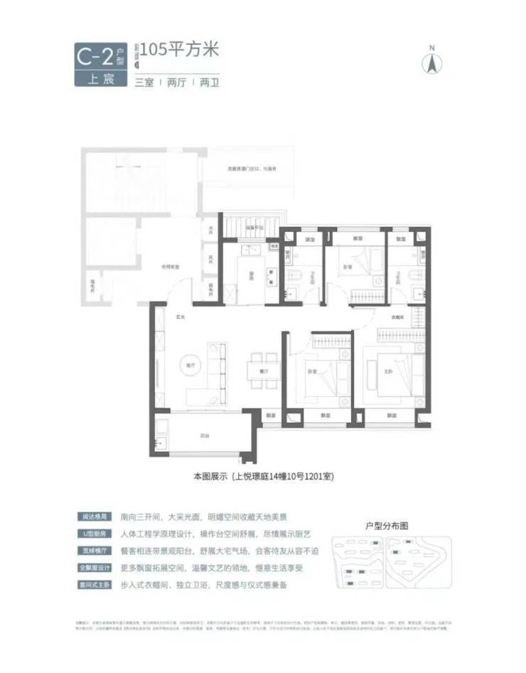 建面约105㎡3房2卫有宽厅和竖厅两种风格,其中宽厅户型好评度颇高。