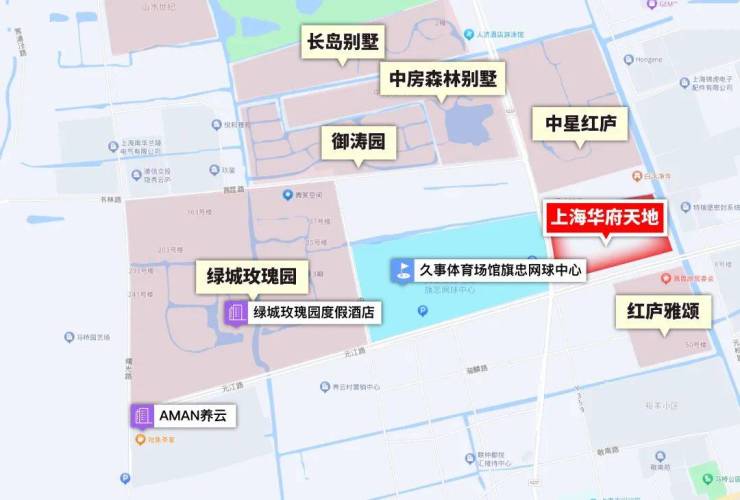 上海华府天地正占位旗忠别墅区核心位置,毗邻旗忠网球中心,被绿城玫瑰园、中星红庐等豪宅围绕。