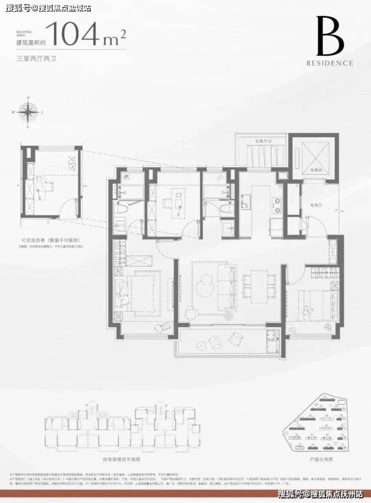 建面约96-104-120㎡3-4房